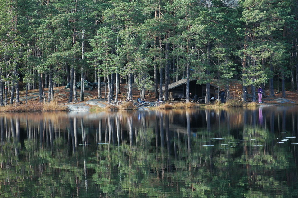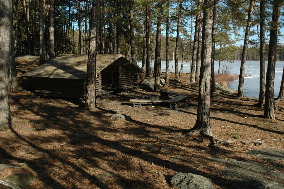 Nice newly built shelter at wonderful forest lake, at a convenient distance about 3 km from Tyresta village. Here you sit almost at lake level and with nice bathing rocks in the surroundings. Right next door is real primeval forest with many 300-year-old pines, and marshlands that provide a pleasant scent. In winter, ski trails can pass through the site.