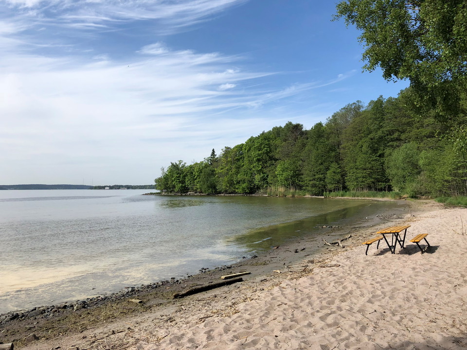 This family-friendly sandy beach is located near Karlsudd on Bogesundslandet, and it's just a short walk from the parking lot at Fridhem. You can get there by walking the long castle loop trail, Stora Slottsrundan. There is a toilet here during the summer and two grills.