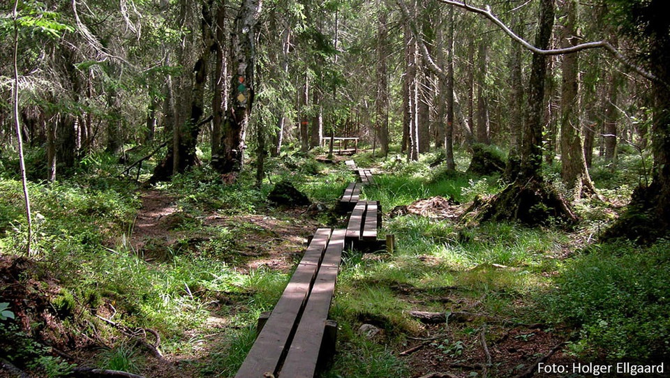 The total length of the trail is about 8 kilometers. The Brinks loop runs mainly through forest and over rocky areas, except in its eastern part where it follows a small road for about a kilometer. The loop is marked with diagonally placed green squares.