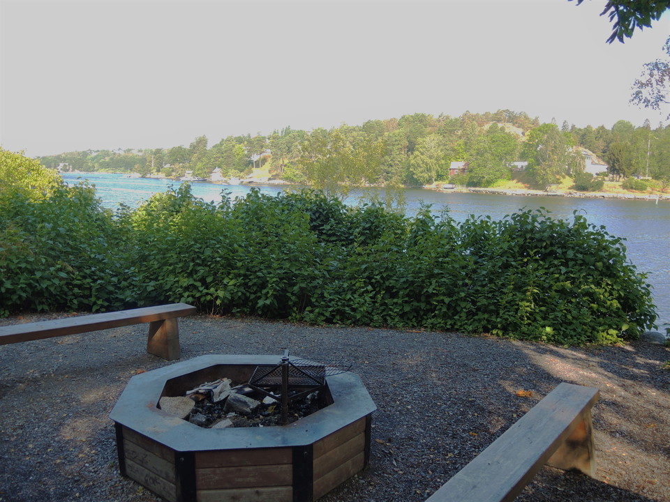 The fireplace has a wood store that is replenished occasionally, so bring your own firewood and supplement with wood from the wood store if necessary. You can reach Eldplatsen from the parking lot at Skogsö chapel. From there, there is a graveled walkway all the way, there is a steeper hill where you in a wheelchair probably need assistance.