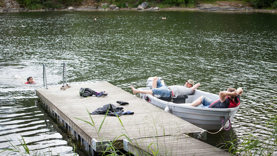 Bathing area with sandy beach and jetties at Fisksätra Holme. Toilet available during the bathing season. Easy to reach from Fisksätra station. Parking is available at Fisksätra sports ground.