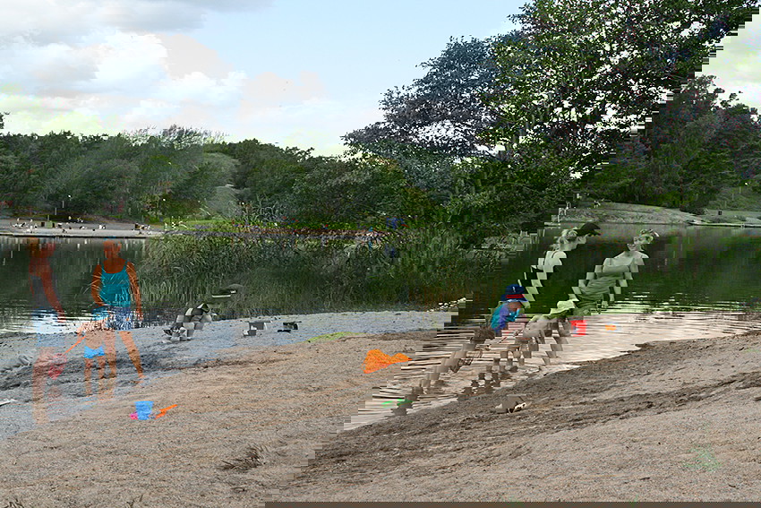 Gimmerstabadet is located at Albysjön, by Alby sjöväg. There is a small sand and grass beach.