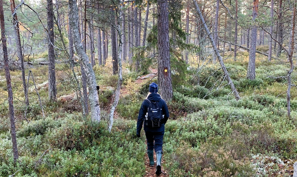You can reach the trail from the visitor parking lot in the southern part of the reserve (on Klacknäsvägen) or from Långvik, just east of the reserve.