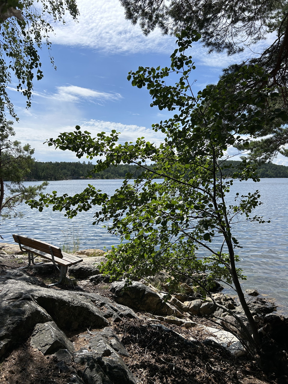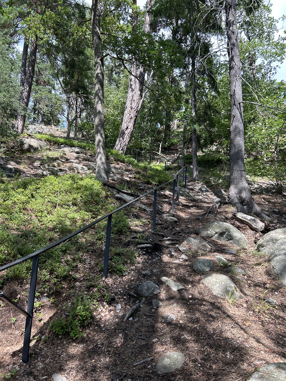 There is a pebble beach and rocks, you can get to the site via Tollare quay or along a steep hill equipped with a steel railing from Barkerivägen.