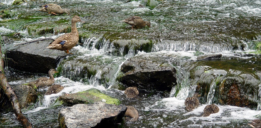 The rapids are home to the rare common tern, which in some years succeeds in nesting by the river. The species feeds on bottom-dwelling insects, mainly the moth Hydropsyche siltalaim, the mayfly Baetis rhodani and various species of whirligigs.