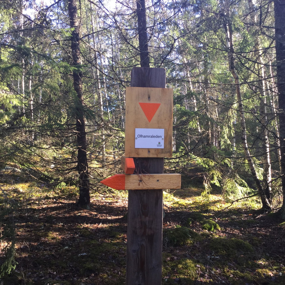 Olhamraleden runs between Vallentuna Centrum (Pressbyrån) via Vallentuna IP to Olhamra and the entrance to Angarnsjöängens nature reserve. It is about 4 kilometers long and contains many interesting natural and cultural areas that will be signposted in 2021. For example, it goes through a primeval forest-like natural forest, beautiful rocky areas and swamp-like wetlands.
