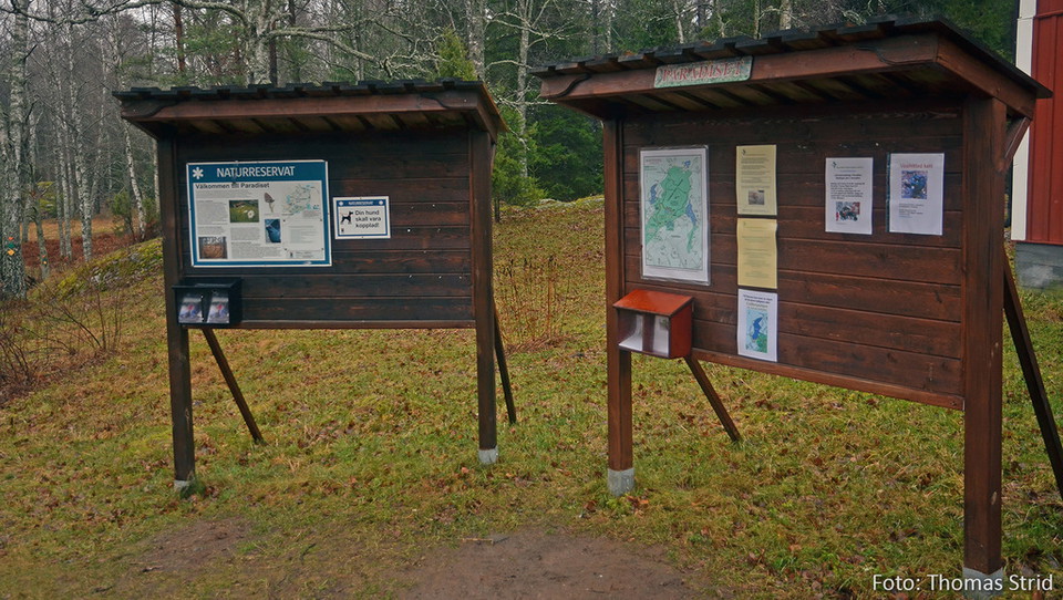 Many people start their visit here at Torpet Paradiset. There are information boards, a picnic area, overnight cabins for rent, simple shelters and a fireplace. The marked hiking trails all start from here. Bring your own firewood if you want to make a fire.