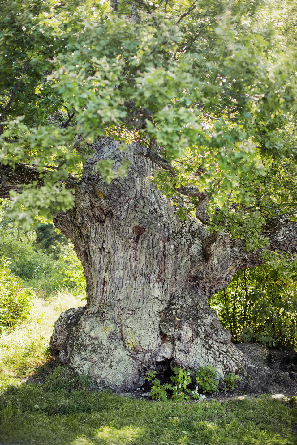 Järfälla's largest oak grows at Sandvik. It stands down by the beach in front of the pier and has a respectable age of at least 600 years. Try how many people you need to be to reach around the oak. The tree is a full 658 centimeters in circumference!