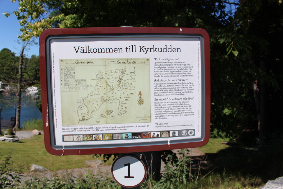 Along the trails there are a total of 35 signs that tell about the history, nature and culture of the archipelago. The trails are located at Djurönäset (Klockarudden), Djurö church (Kyrkudden) and the Eriksbergsskogen/Hamnskogen nature reserve.