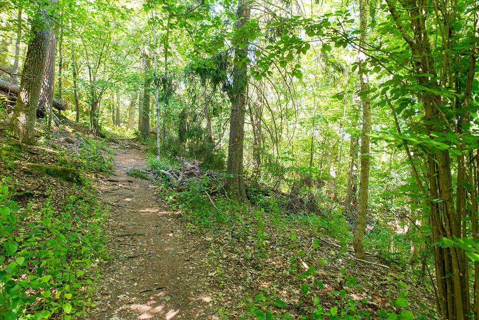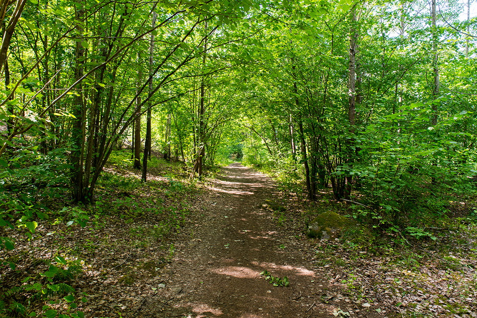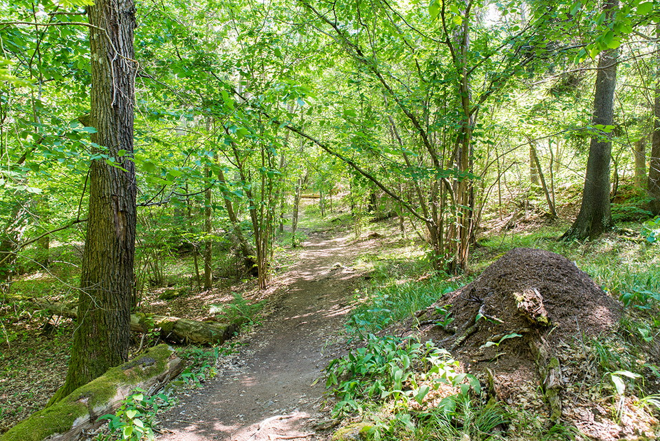 Walking trail through Rågsved nature reserve, along the western edge of Magelungen, which takes you past frog ponds, bird towers and barbecue area.