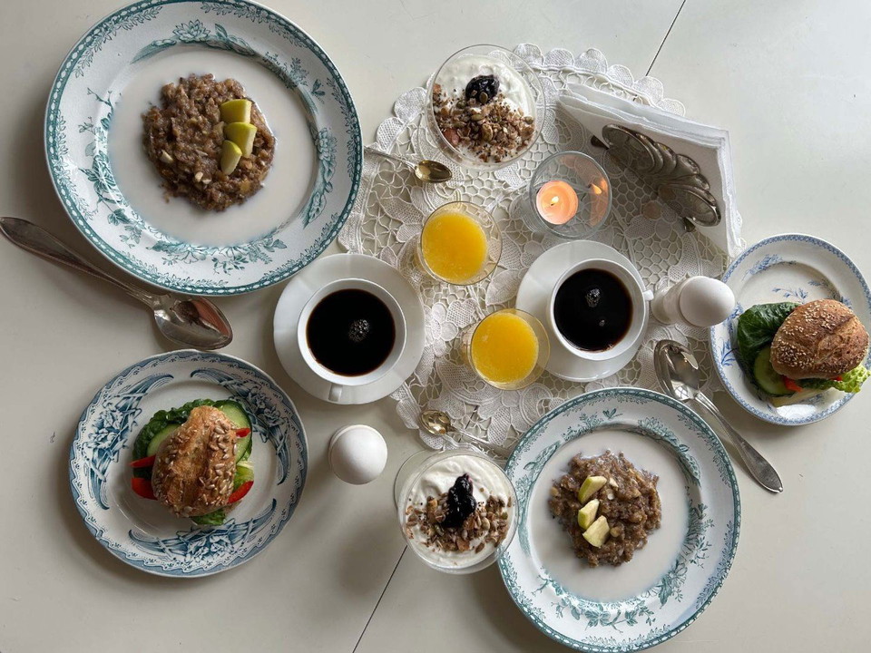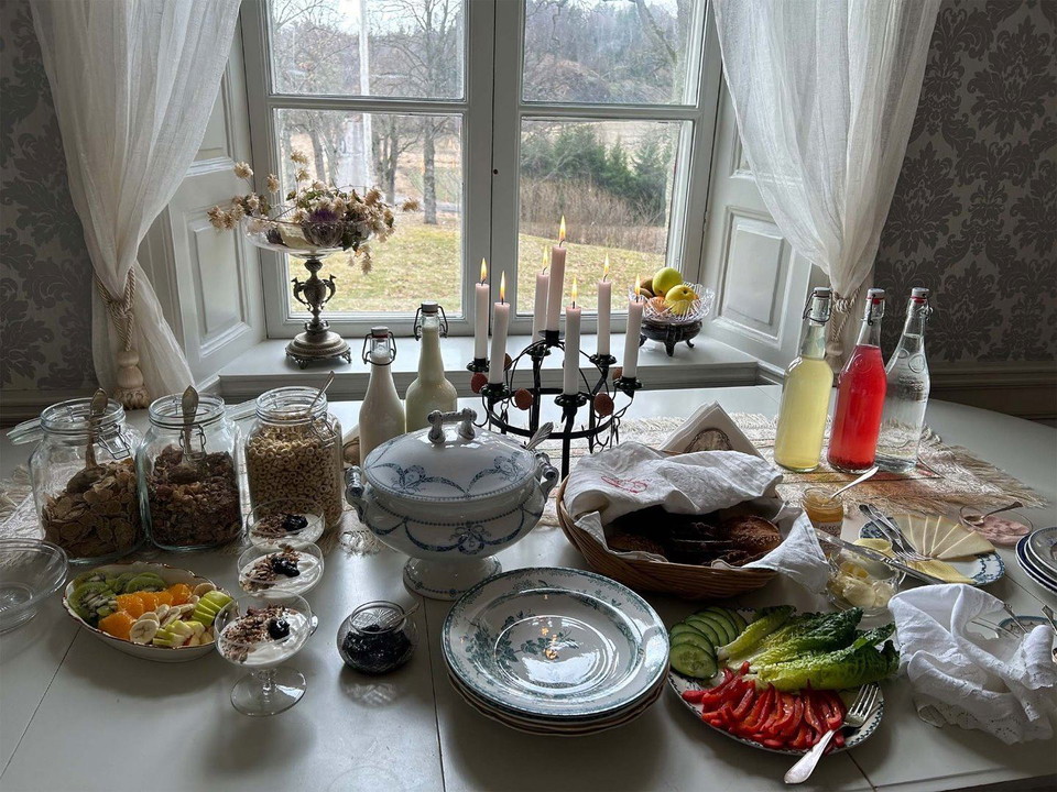 In the morning, a traditional Swedish breakfast with a twist is served using the best organic raw materials the region has to offer. It could be boiled eggs, yoghurt and cereal, and freshly baked sourdough bread with goat cheese from the neighbor and a homemade jam. Refreshing smoothies from forest berries and garden herbs or our spicy porridge with nuts and seeds. The breakfast is adapted to your wishes. From the breakfast buffet, you can also pack a picnic basket for lunch. Make your own sandwiches, order some extra eggs, borrow a thermos, and you're ready for the day's adventure! A simpler dinner made from organic and local raw materials can also be booked as an option to the accommodation. During the summer half-year, you can also order Långbro's barbecue package with the farm's own meat or vegetarian delicacies to cook yourself on the pleasant patio. Glasses, porcelain, and everything you need are available to borrow. In the summer, the farm's café is also open some evenings, serving simpler dishes and homemade baked goods. There are also many nice eateries in the nearby area.