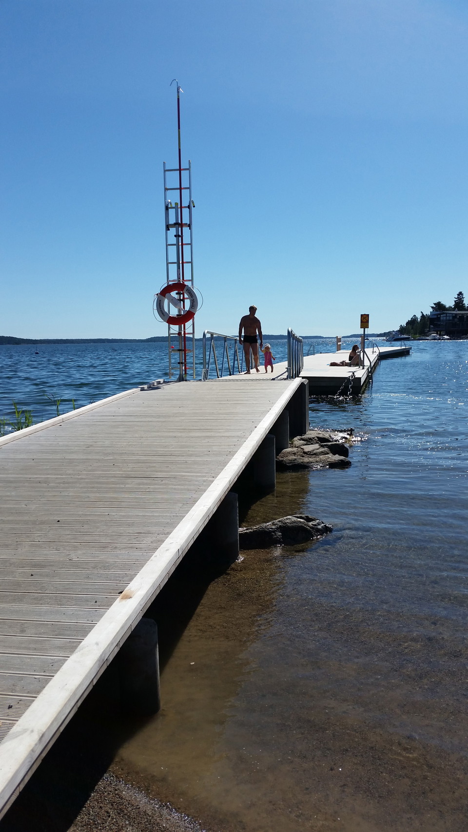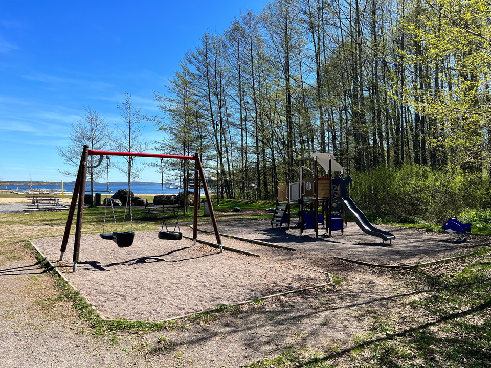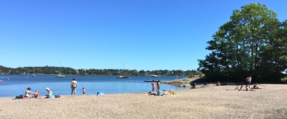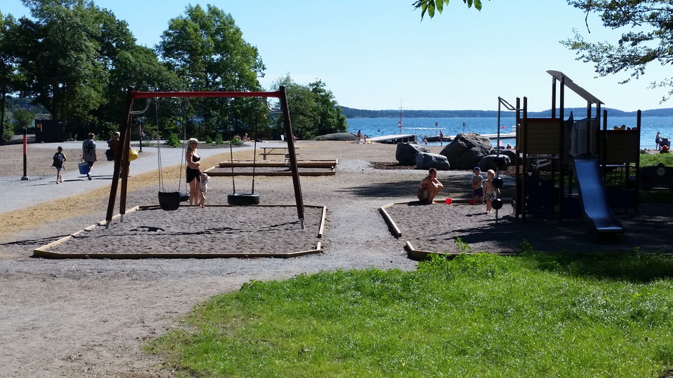 Strandbadet is located at Erstaviken along Strandallén. There is a sandy beach, 70 meters of bathing jetties, grassy areas, rocks and a playground. The outer jetty is moved a dozen meters out and serves as a bathing jetty, where you can only swim.