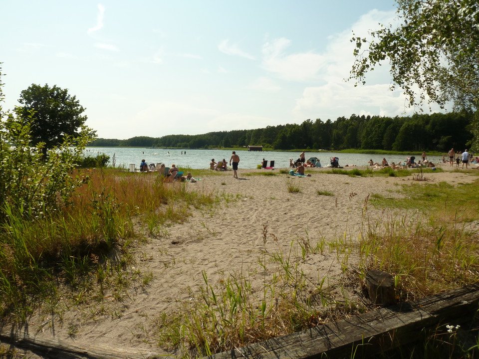 Schweizerbadet is a popular sea bath on Dalarö with a fine, shallow sandy beach where the water is often warm. A long jetty leads out into the water and there is a small kiosk, barbecue area and toilets by the beach.