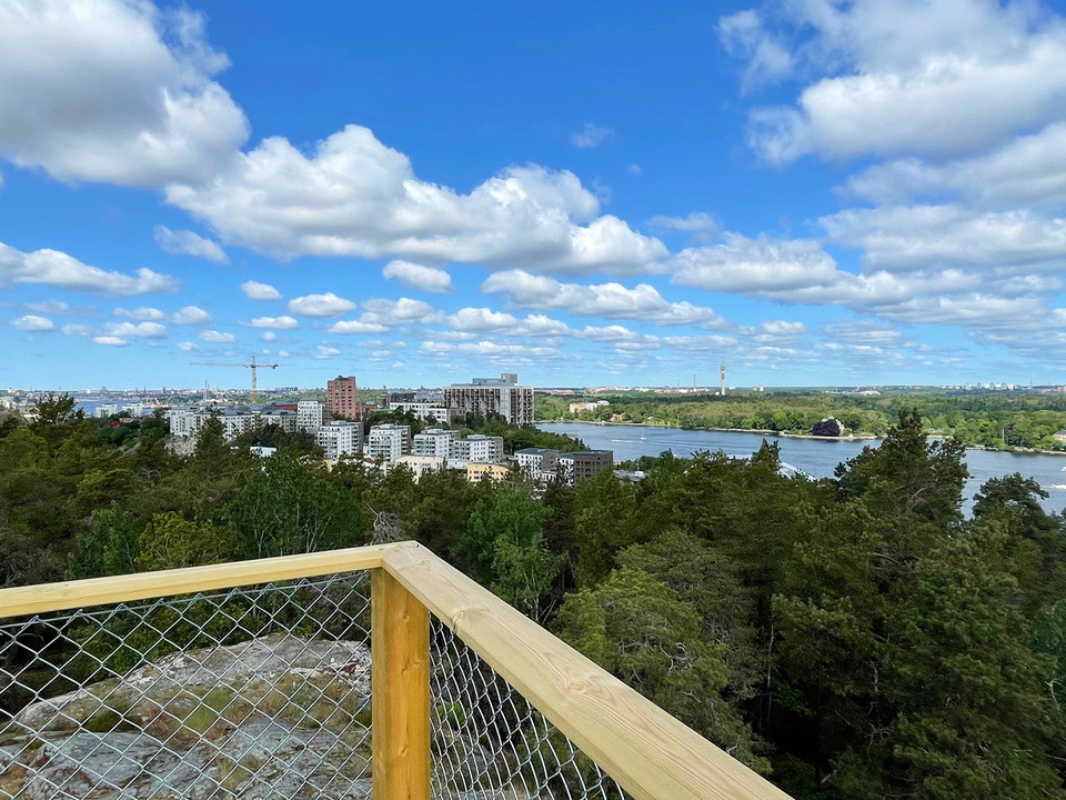 From the tower you have a magnificent view of large parts of Nacka and Stockholm. The tower is built in wood, a solid and sustainable material with low environmental impact.