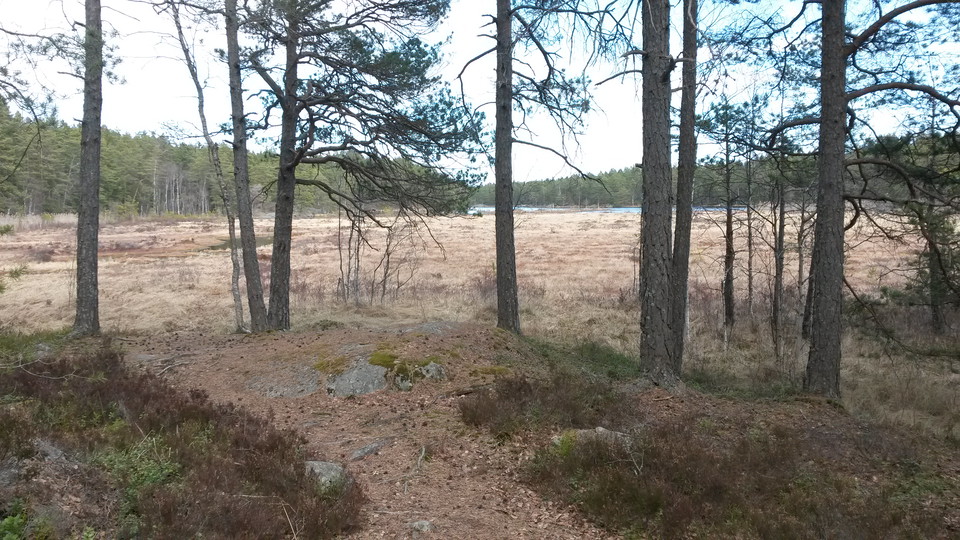 The hiking trail through Lännaskogen is marked with orange markings. Sometimes difficult to follow.