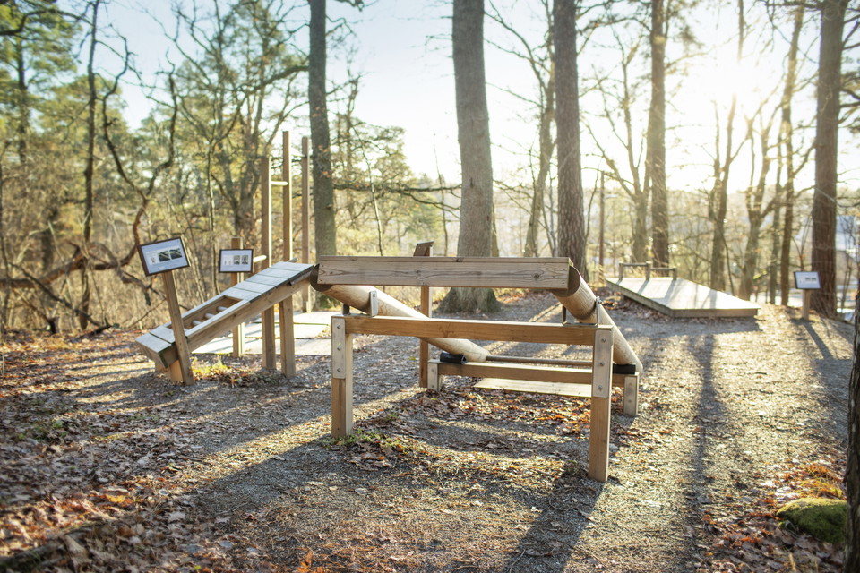 There is an outdoor gym at Veddesta Trail. Exercises you can do are deadlifts, sit-ups and chins.