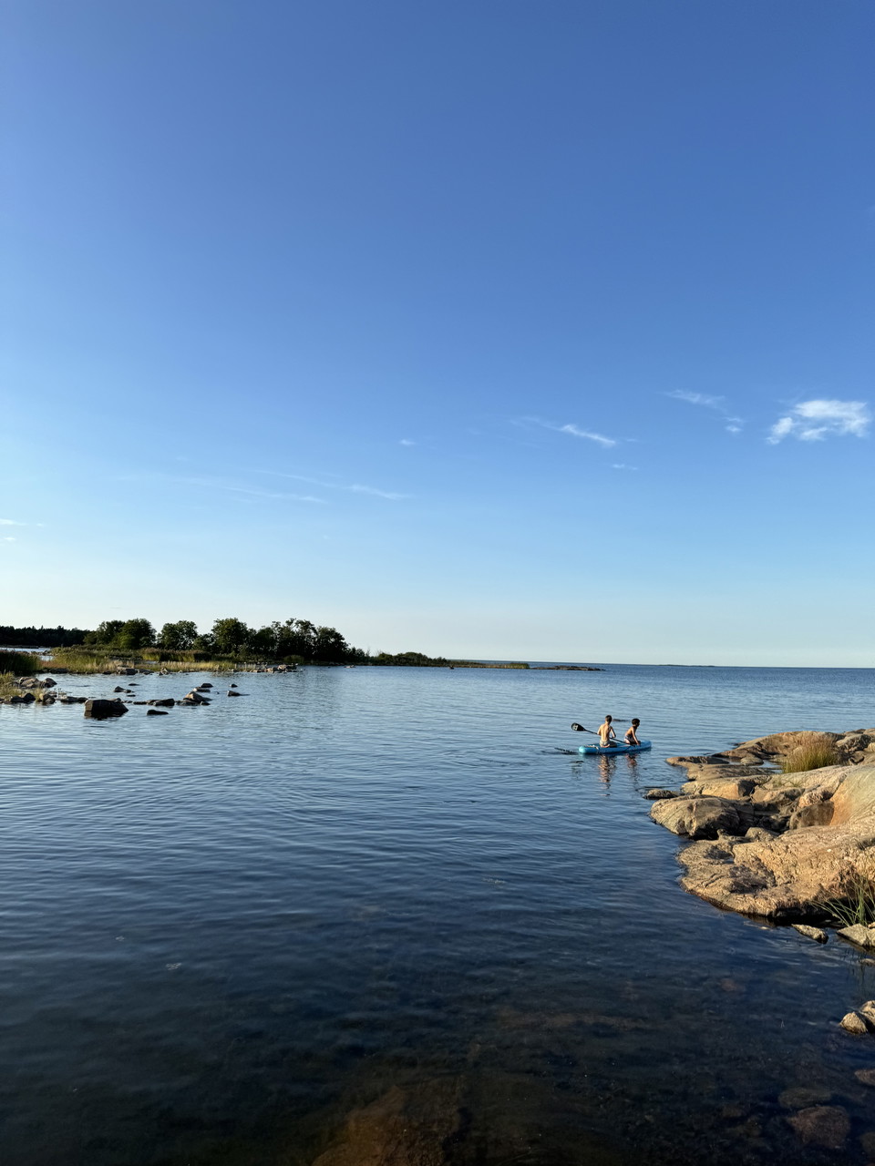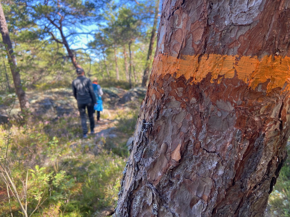 Rossholm is a former military firing range. Here the trail follows the gravel road for just over a kilometer before it turns left into the forest. Just as you reach the sea, there are fine rocks that are perfect for a coffee break.