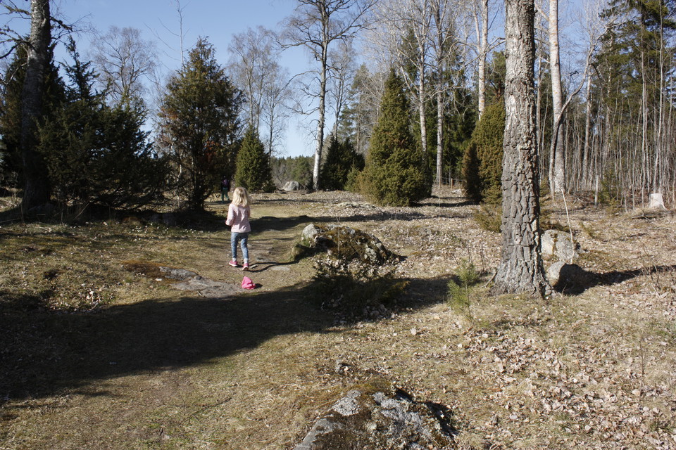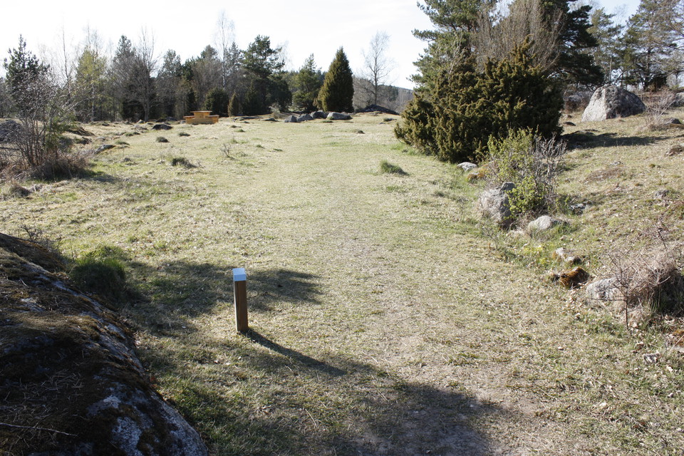 Från handikapparkeringen är marken hård med betat gräs och bara små ojämnheter fram till fikabordet inne i hagen.