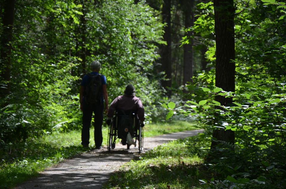 From the parking lot at the Blåhäll bathing area, there is a narrow paved walkway to Härjarö harbor. The walkway is a few years old and there are small irregularities. The walkway slopes slightly from the parking lot down to the bath but is otherwise flat.