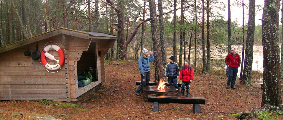 At the western end of Lake Siggeforasjön, there is a parking area where you can start and finish your hike. After a few hundred metres along the forest road, which has a metal bar across it, you’ll reach the place where the path splits. If you turn left, you can take a break at a rest spot with a wind shelter and a fireplace by the shore of the lake. Then, you’ll walk on a path along Lake Siggeforasjön for 700 metres, before continuing along a forest road for cars. Back on a path, you’ll walk past Lake Lilla Ramsmossjön, and reach another wind shelter with a fireplace by Lake Stora Ramsmossjön at the halfway point of the walk. There is a wild atmosphere around the little forest lake and its surrounding pine bog, the 3 kilometres long Ramsmossen. The path back goes over slightly more rugged terrain, with flat rocks and thin pine forests.