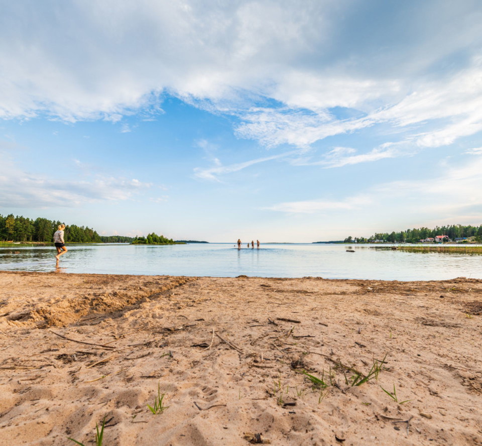 From Kristinehamn city center drive towards Picassoskulpturen/Skärgården. After Presterudsgymnasiet turn left on Dan Broströms gata. Turn right on Sannagatan. Follow Sannagatan which turns into Magasinsvägen and becomes a gravel road. After about 4 km you will come to a parking lot next to the road. Park and walk down to the right on a gravel road. Pass a closed gate and continue to the beach.