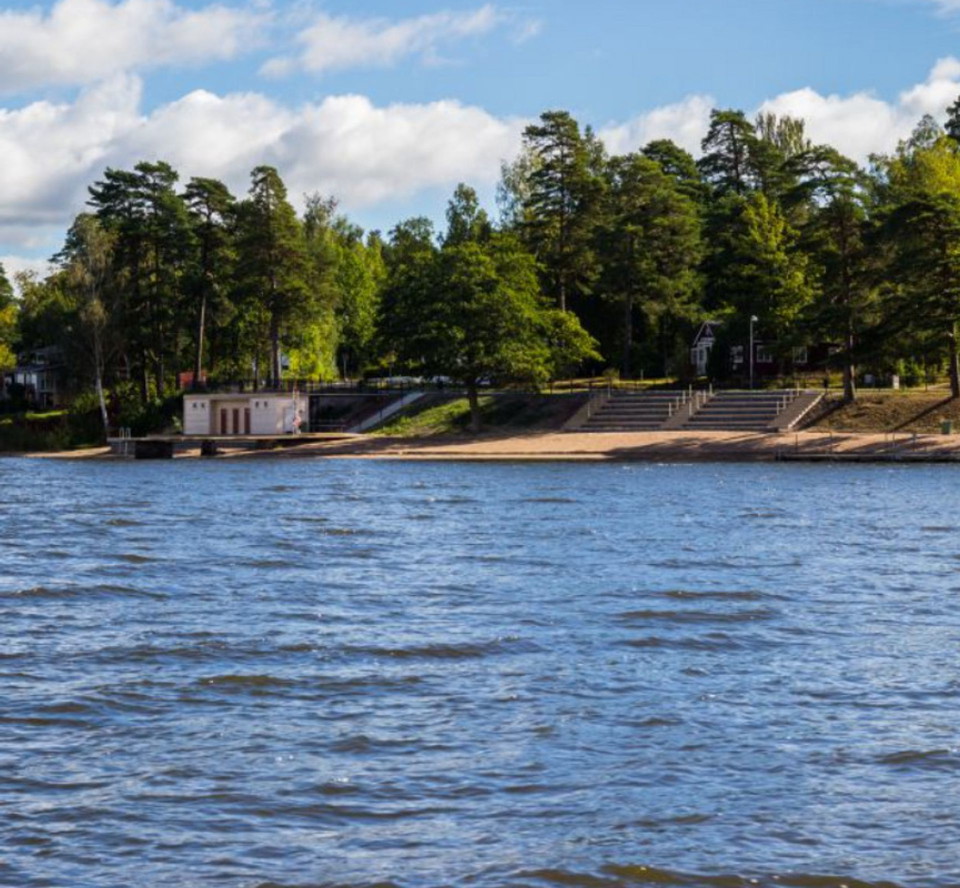 A sandy beach with bathing platforms located along Vålösundet, lake Vänern, only 3 km from the city centre.
