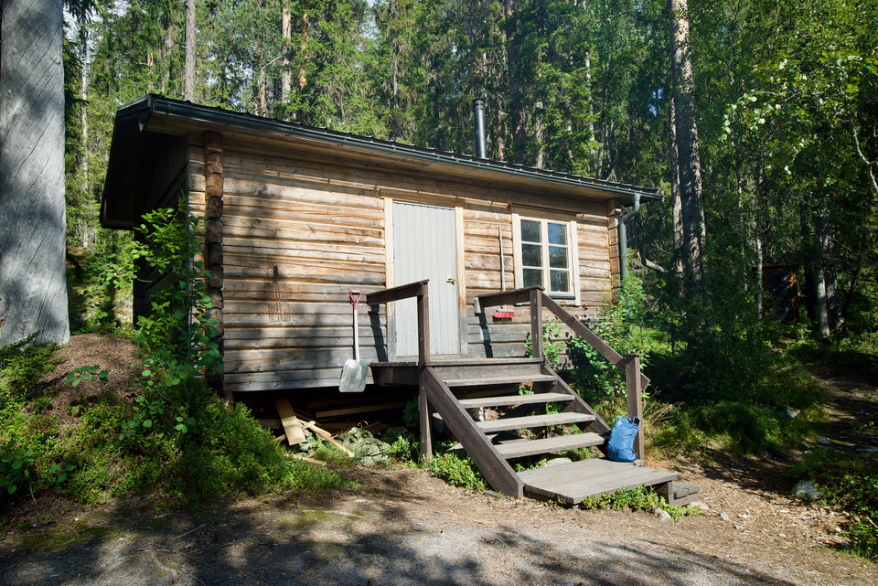 Mysig stuga på plats som är trolsk en sensommarkväll. Sköna sängar och väl fungerande vedspis (augusti 2023).