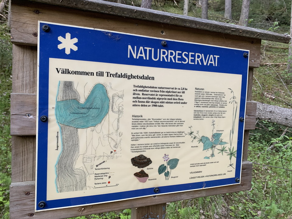 On the eastern edge of Sollefteå town is this small reserve. It consists of a deeply cut moist ravine on the south side of the Ångerman River. A path leads around the reserve and via it you can also reach the old health spring with iron-containing water.