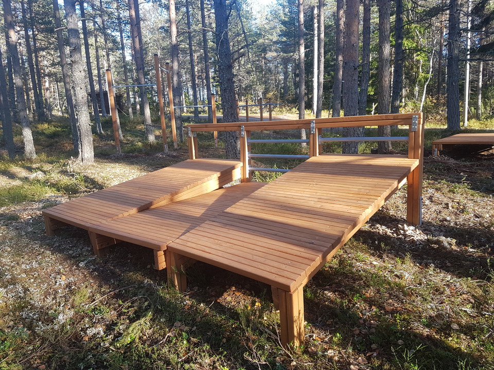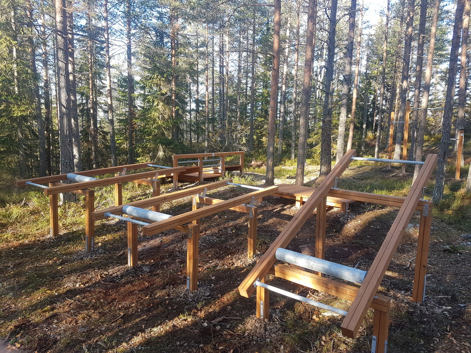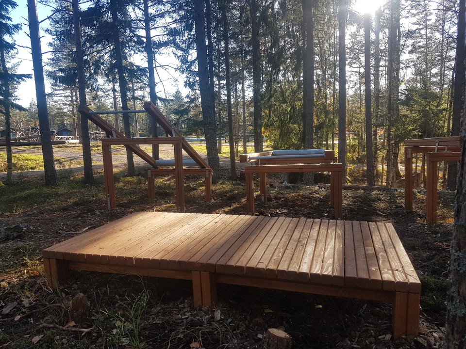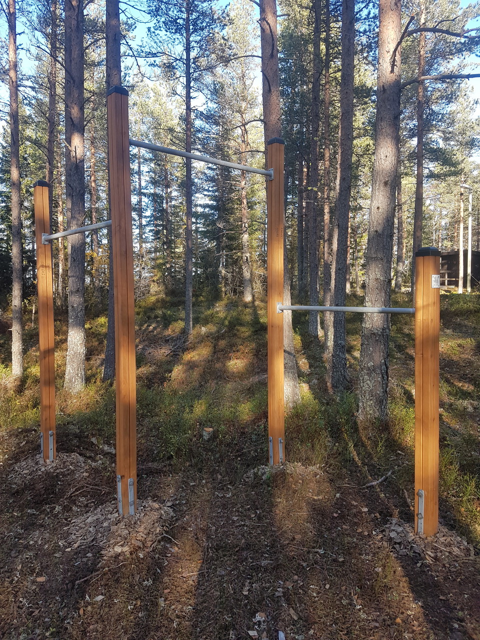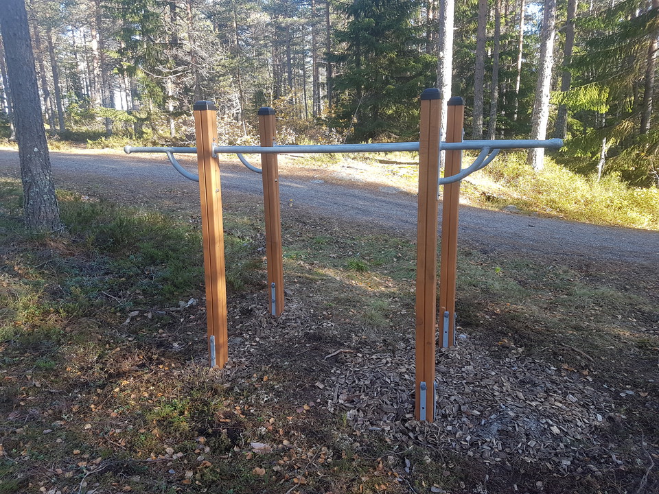 Outdoor gym right next to Raststugan at Friluftscentrum Södra Berget, a total of xx stations to train on.
