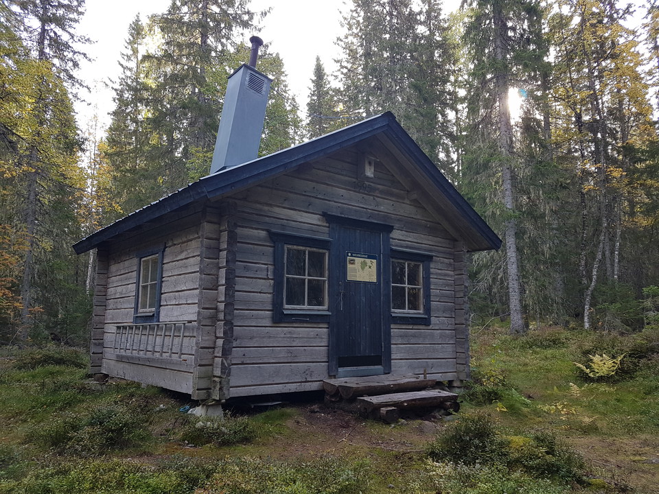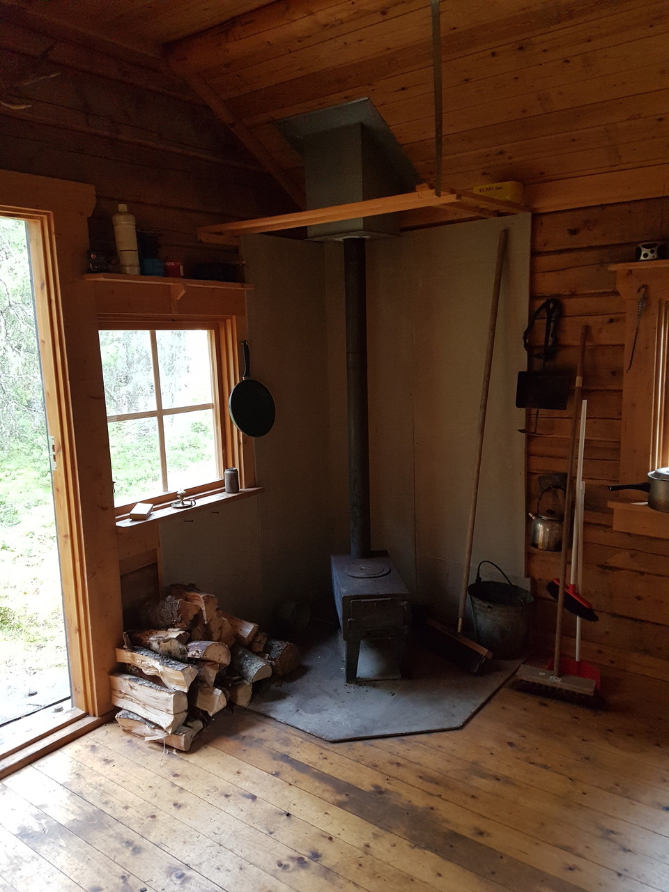 Otroligt fin stuga.Stora sängar, matbord med bänkar och stolar, kastruller, stekpanna, kaffekanna, såg, yxa, riktigt bra kamin med kokplatta, fanns också två extra sovsäckar. enda som saknades var ett ett grillgaller. Det fanns ved när vi var där. vatten hämtade vi i tjärnen/bäcken.