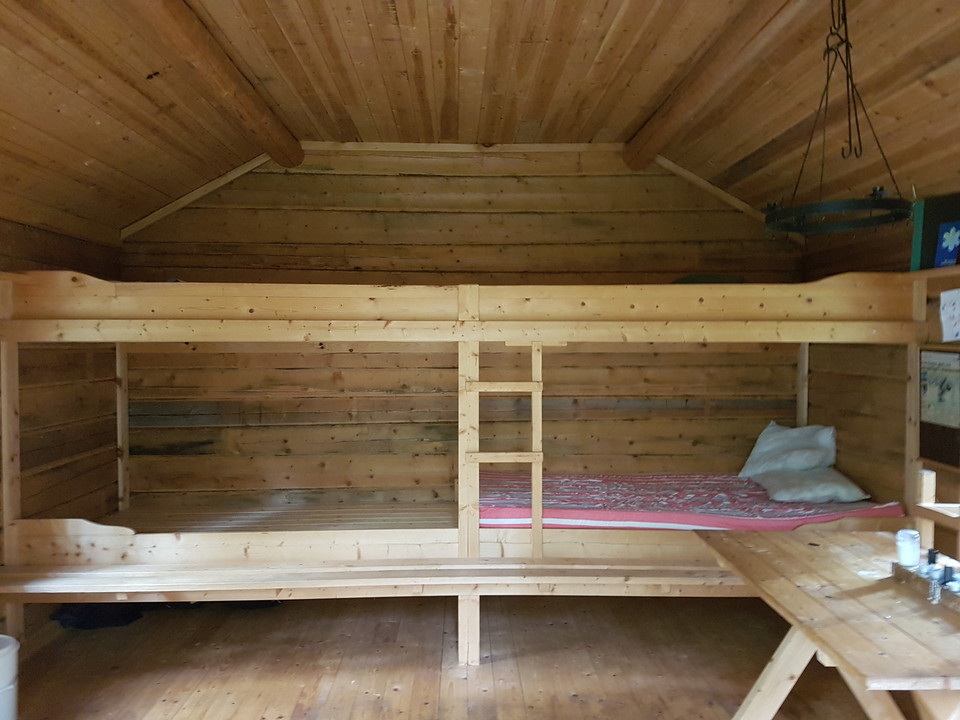Very nice overnight cabin with 4 bunk beds of 120 cm. Mattresses available. Dining table and benches. Wood stove and firewood.