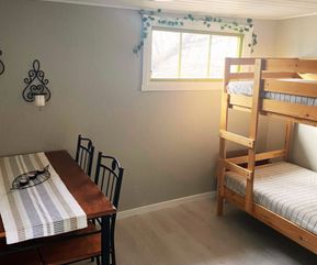 In the cabin there are 4 beds, a bunk bed and a sofa bed for 2 people, small kitchen with hotplate, microwave and fridge,