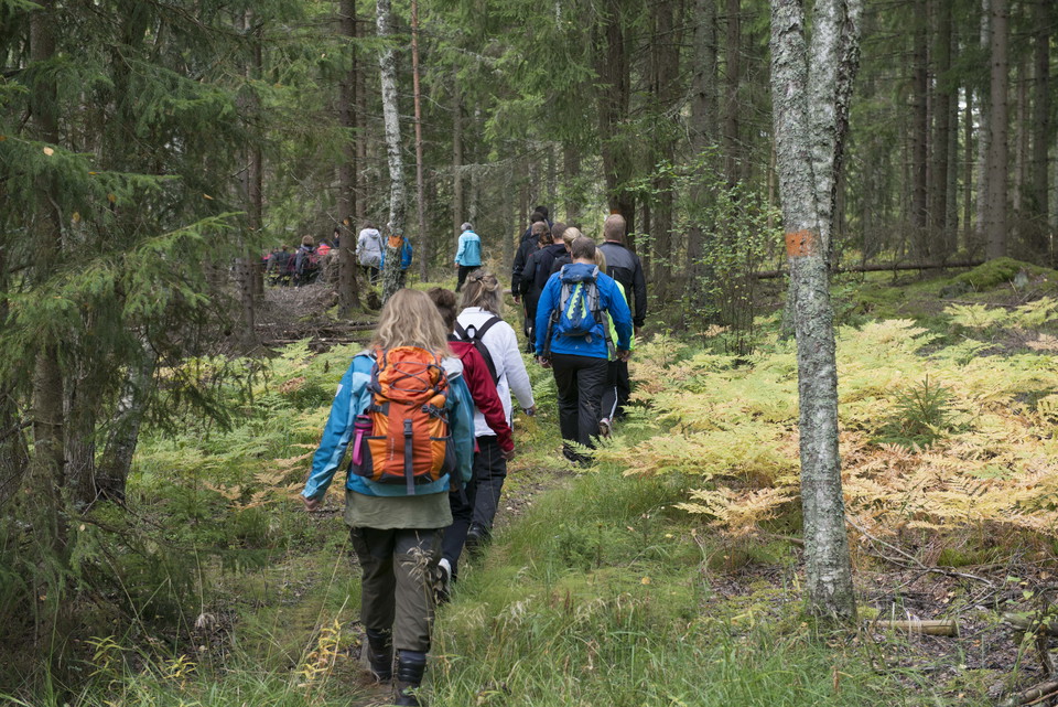 The trail is about 6.3 km and runs in mixed terrain on both forest paths and gravel roads. To find your way along the trail, follow the orange/black signs with the text "Anslutningsled Bruksleden". Keep in mind that some stretches of the connection trail are shared with MTB so show consideration for each other.