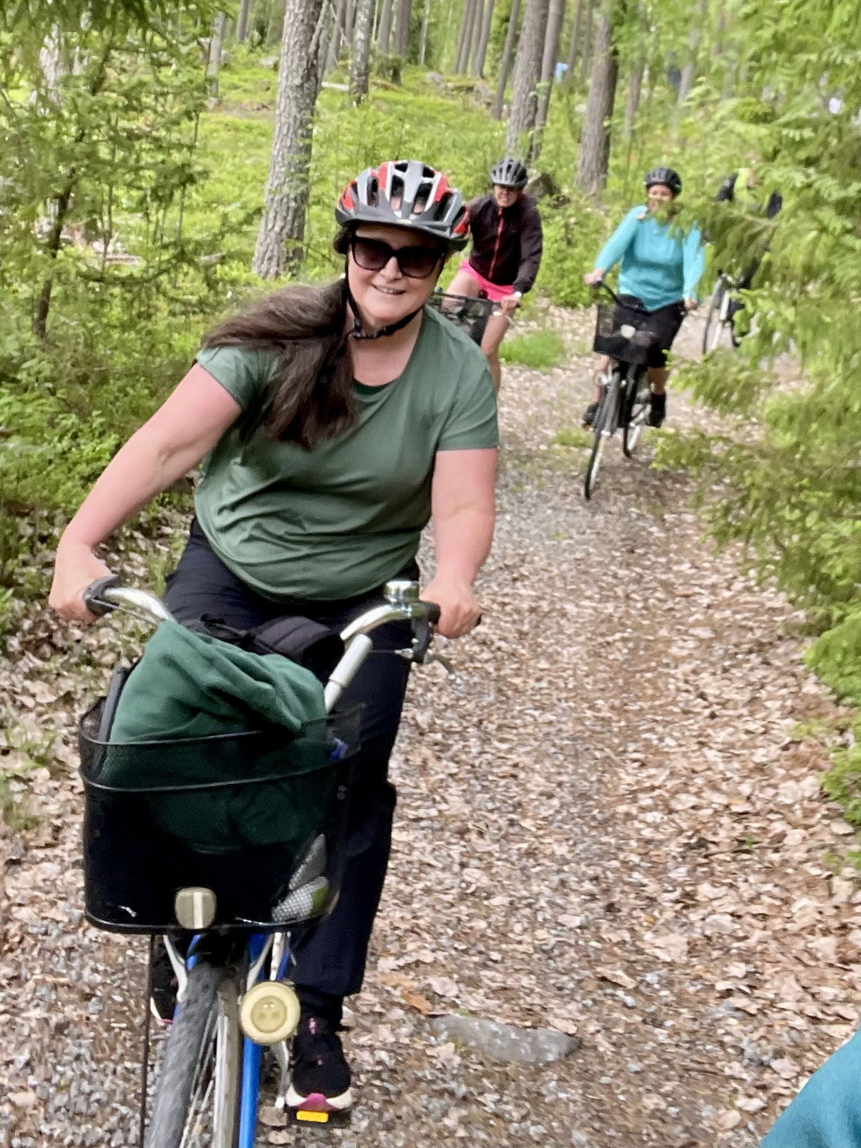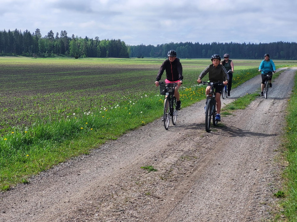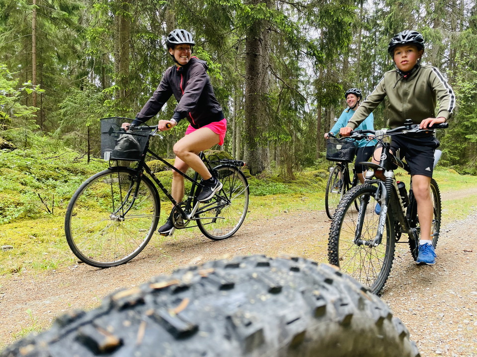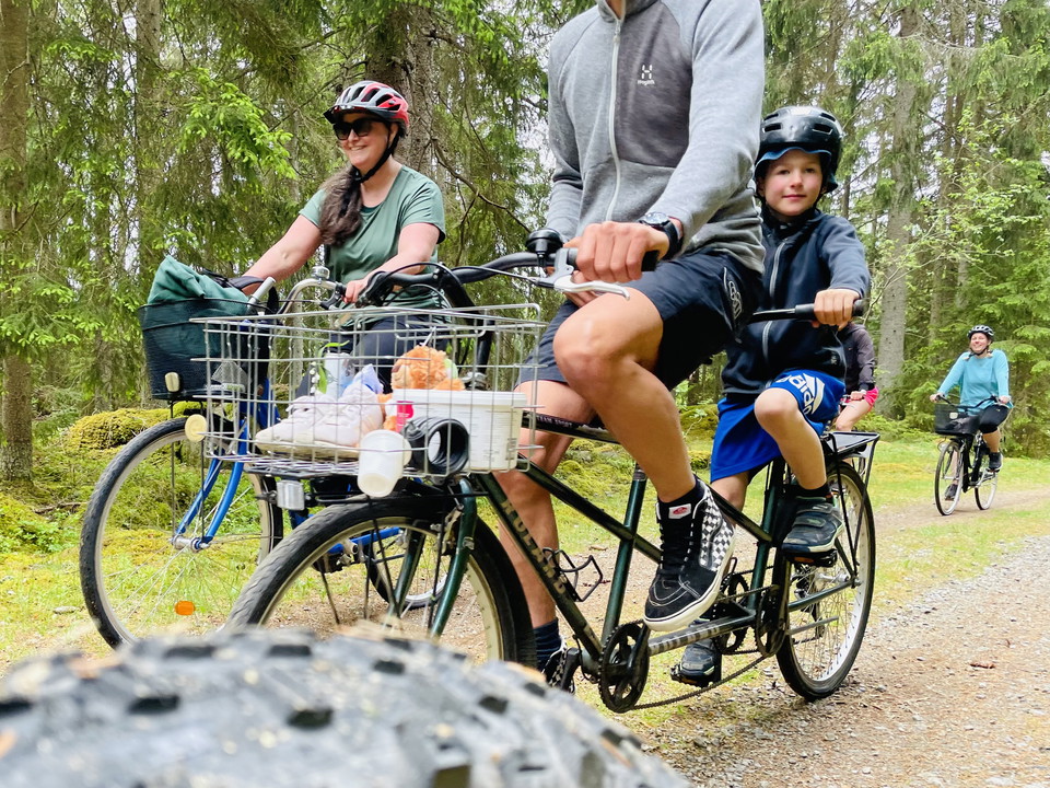 Part of the bike trail goes over private land, so please be considerate. It’s proper courtesy to cheerfully greet others and slow down on private property. Where the trail crosses the Västeråsvägen road is unmarked, but there are clear views of any oncoming traffic. Always ride safely and supervise all children.