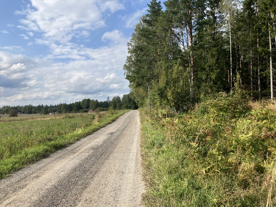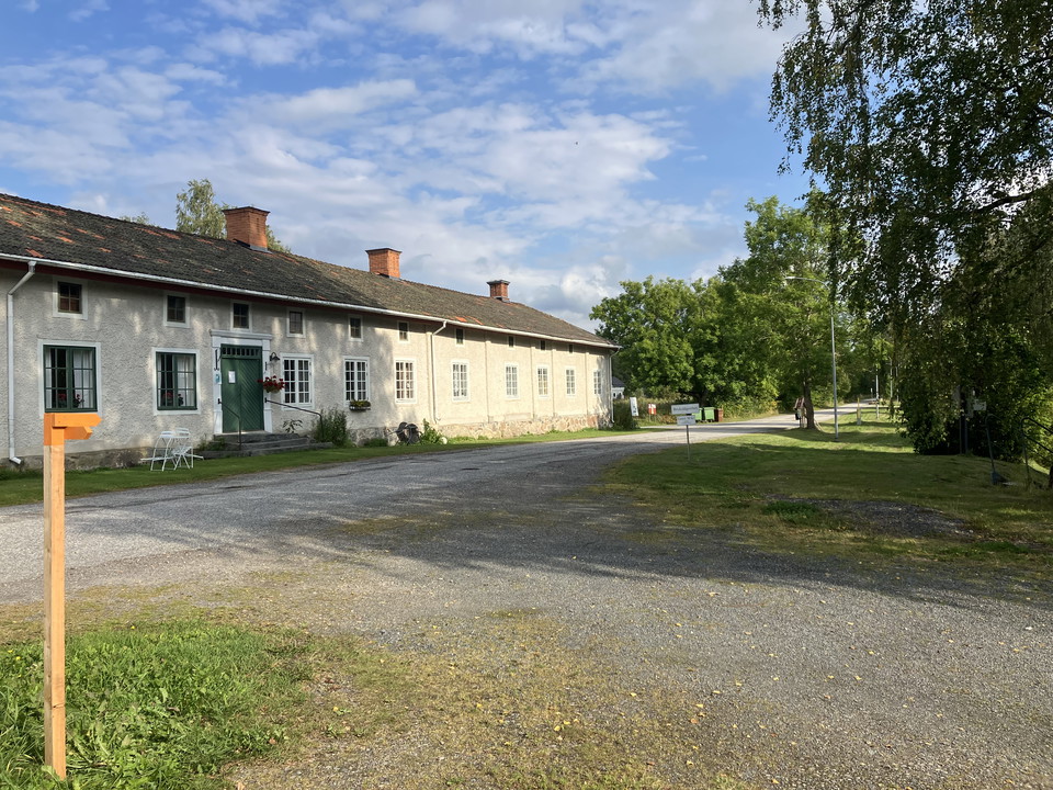 When you step out of the nature reserve, there is about half a kilometer left in the forest before you arrive on Yggersvägen and turn right. About 300 meters later you come out on a short stretch of asphalt. Then turn right and walk the last bit to Karmansbo bruksmiljö between the house and barn.