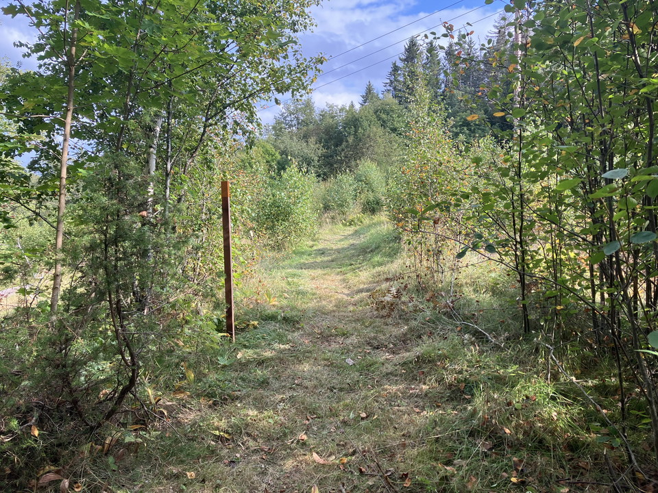 Starting at the parking lot of Karmansbo bruksmiljös, you follow the orange markings past the workers' barn. After a careful check of the traffic, cross the road and make your way up the old KURJ track. The walk along the former embankment is easy and well prepared. Here you have good views of fields and pastures.