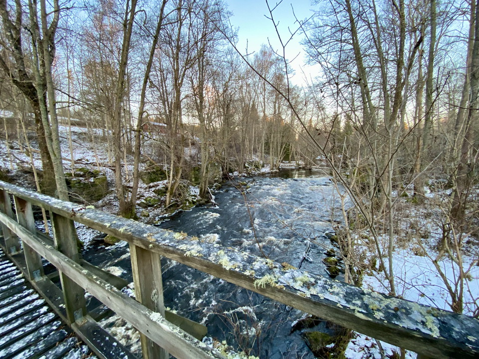 A final bridge takes you back over Hedströmmen and now you pass right next to the blacksmith's shop and forge in Karmansbo. Here you can take the opportunity to read more about life and work at the site in the past.