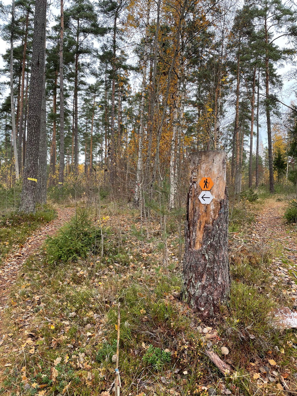The trail is 6.2 km and follows orange signs. There are footbridges along the trail to be able to get around dry-shod. Also, keep in mind that there are several trampled paths and trails in the area, so be careful to follow the orange signs. Along the western side of the trail there is a prepared barbecue area. Remember to follow the restrictions that apply when it comes to making fires in the forest and land. Use common sense and take your rubbish home with you. Remember that dogs must be kept on a leash along the trails.