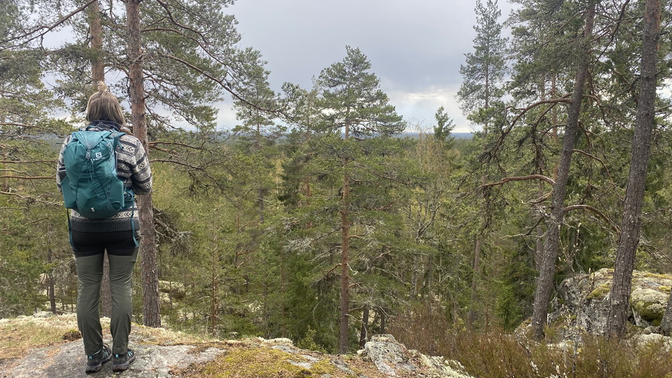 The very popular Landsbergstriangeln (the Landsberg Triangle) hiking trail is a 16-km route that includes sections of the famous (and much longer) Bruksleden hiking trail. It leads through a dreamy forest and along beautiful lakes and streams. Remnants of iron mines and foundries from hundreds of years ago line the path and add a sense of wonder. A detour down the short Issjöstigen trail leads to a beautiful canyon and impressive talus caves formed by ice age glaciers. It’s well worth the extra kilometre! But the big highlight is, of course, Landsberget hill with its magnificent view of the area — with the best spot for views at a scenic overview 300 m from the main trail down the Issjöstigen trail and lower Landsberget parking area.