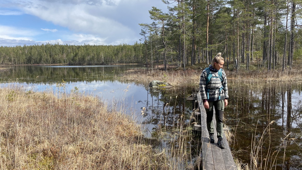 Because a dam has burst at lake Sågsjön, there is no bridge crossing the lake at the site. Use caution when walking over the crossing, built by the public.