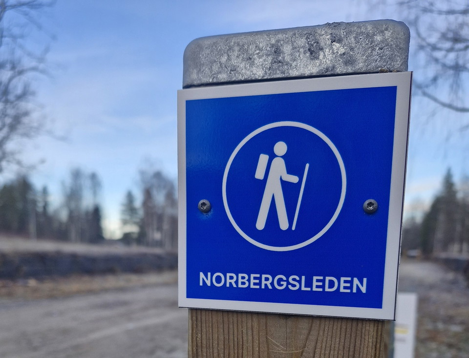 Norbergsleden is marked with blue signs. The terrain along the trail is mostly flat, with some hilly sections primarily at Klackberg, Svinryggen, and Mossgruvan. The surface varies from asphalt to gravel paths and natural forest trails. The effective walking time for the entire Norbergsleden is 5-6 hours, but this does not include longer stops at attractions or cozy cafes. A bicycle is a good companion for those comfortable with occasionally cycling on trails.