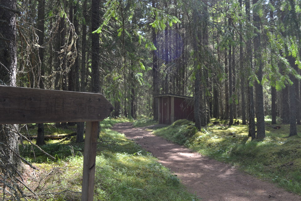 At highway 68, just south of Riddarhyttan, a sign points towards Röda Jorden. Follow the gravel road for 2 km, then a wooden sign points left and after a few hundred meters at a large parking lot you have arrived. (On the way to the Red Earth meeting point there is also a smaller parking lot for those who want to follow another hiking trail into the Red Earth).