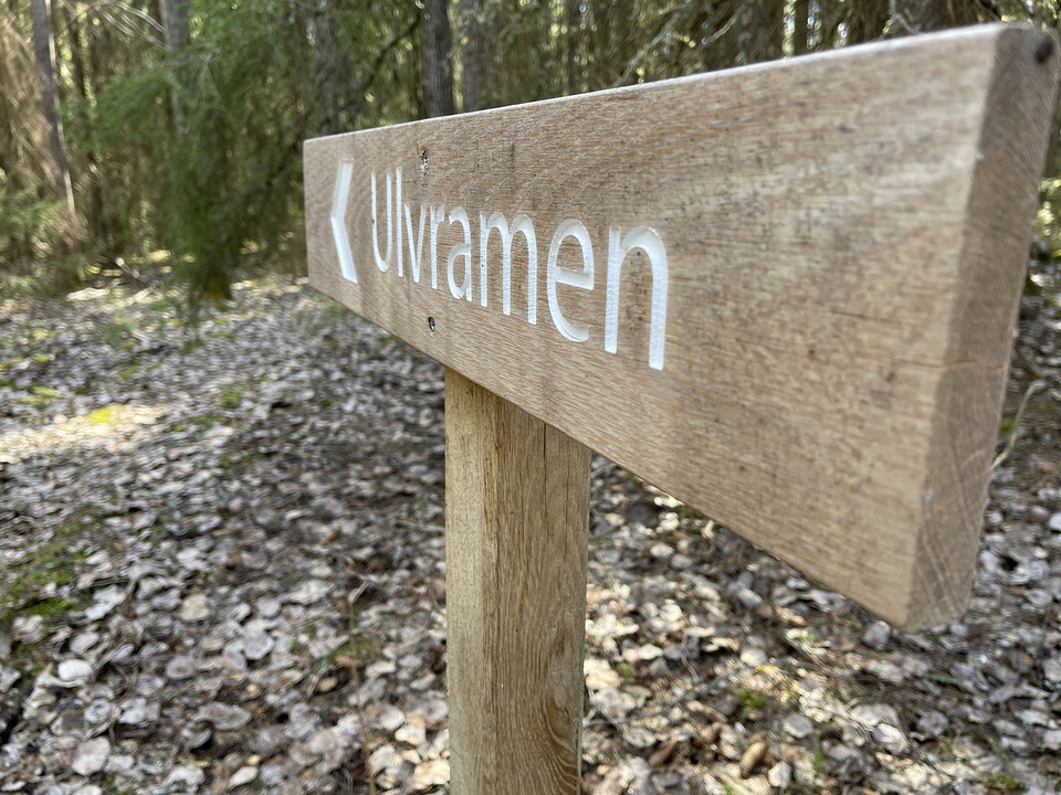 Där den västra stigen börjar finns en parkering. Stigen är cirka 1 kilometer lång och strax innan den når sitt slut vid sjön Ulvramen så delar den sig i två grenar. Väljer du den vänstra grenen kommer du fram till en rastplats vid vattnet.