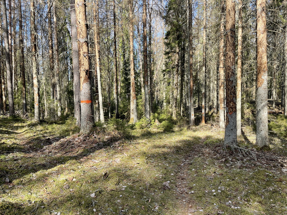 Södra delen av reservatet har haft stora angrepp av barkborre. Till stor del död skog från parkering till sjön. Stigen är dock röjd så att man kan gå 😀.