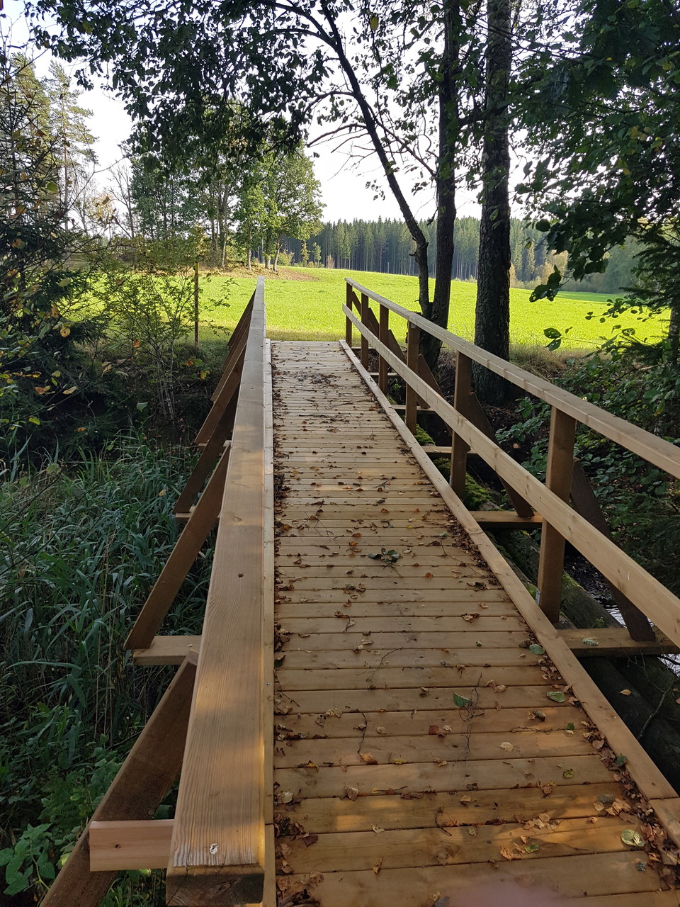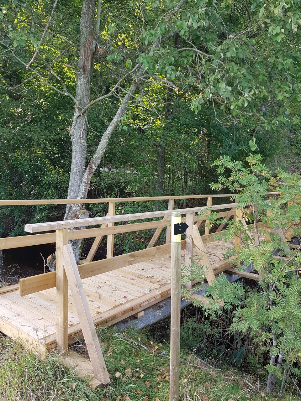 Ensin kävelet pohjoiseen lyhyen matkan farabolinen tie ennen kuin menet alas soratie. Polku kulkee pitkiä puisia niittyjä (entinen sotilasvarasto) ennen paluuta Farabolsvägen ja jatkaa etelään noin 700 metriä.