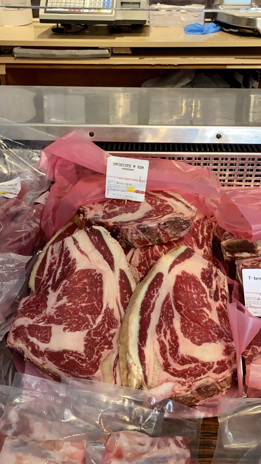 Farm shop with sausages, meat and ham.