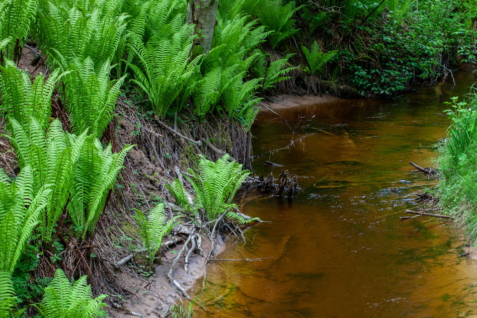 The area is sheltered, with constantly high humidity, no wind and with vegetation that provides shade in the form of large tree crowns. The area is rich in plants. Some flora thrives in the shady park environment, such as ostrich fern, desm bud, goldenrod.