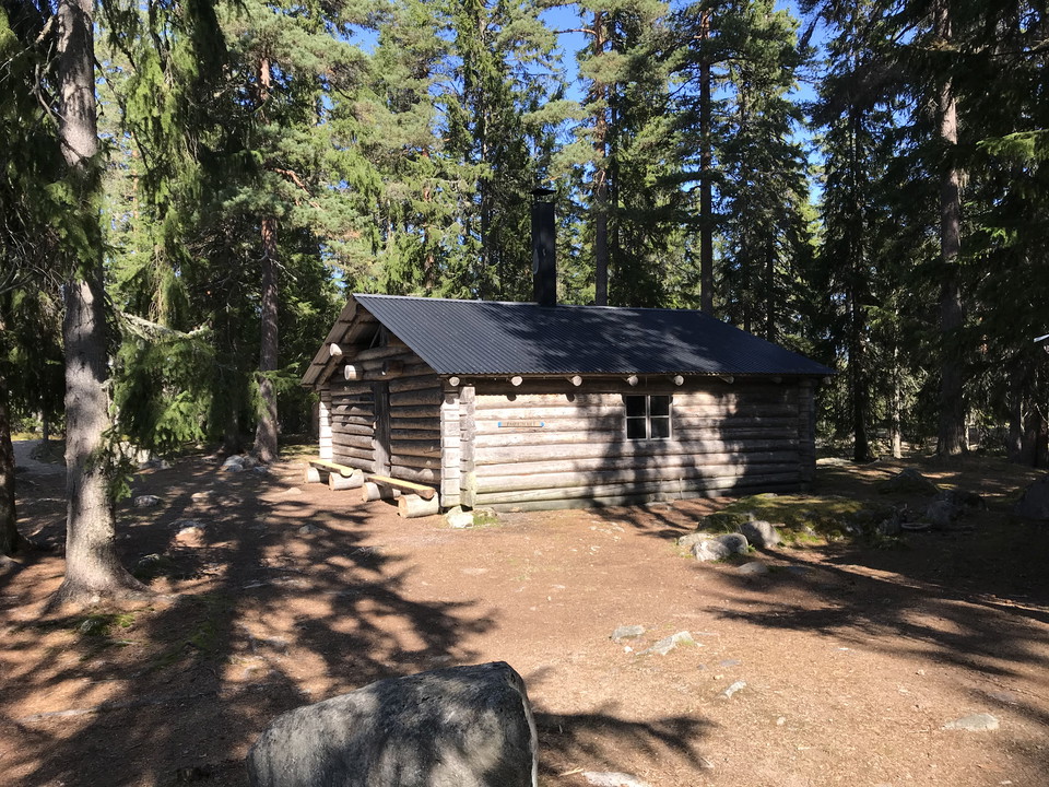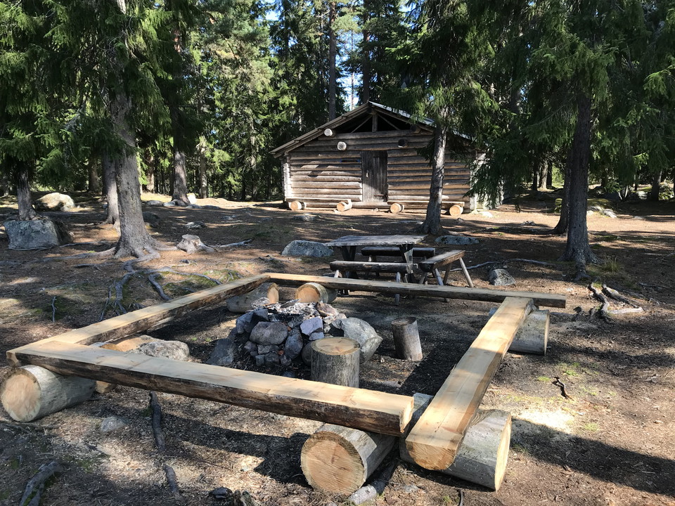 Large resting cabin with eight wooden bunks and the possibility to make a fire indoors. The cabin is built like the old barracks for forest workers that used to stand on the site. It is also possible to camp around the cabin.