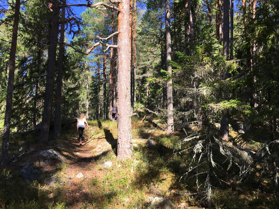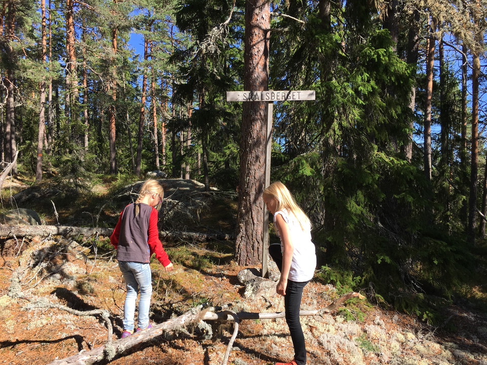 Fin nygjord märkning i klarorange färg upp till toppen av Skalsberget, vi gick från Bergkvarnsdammen.