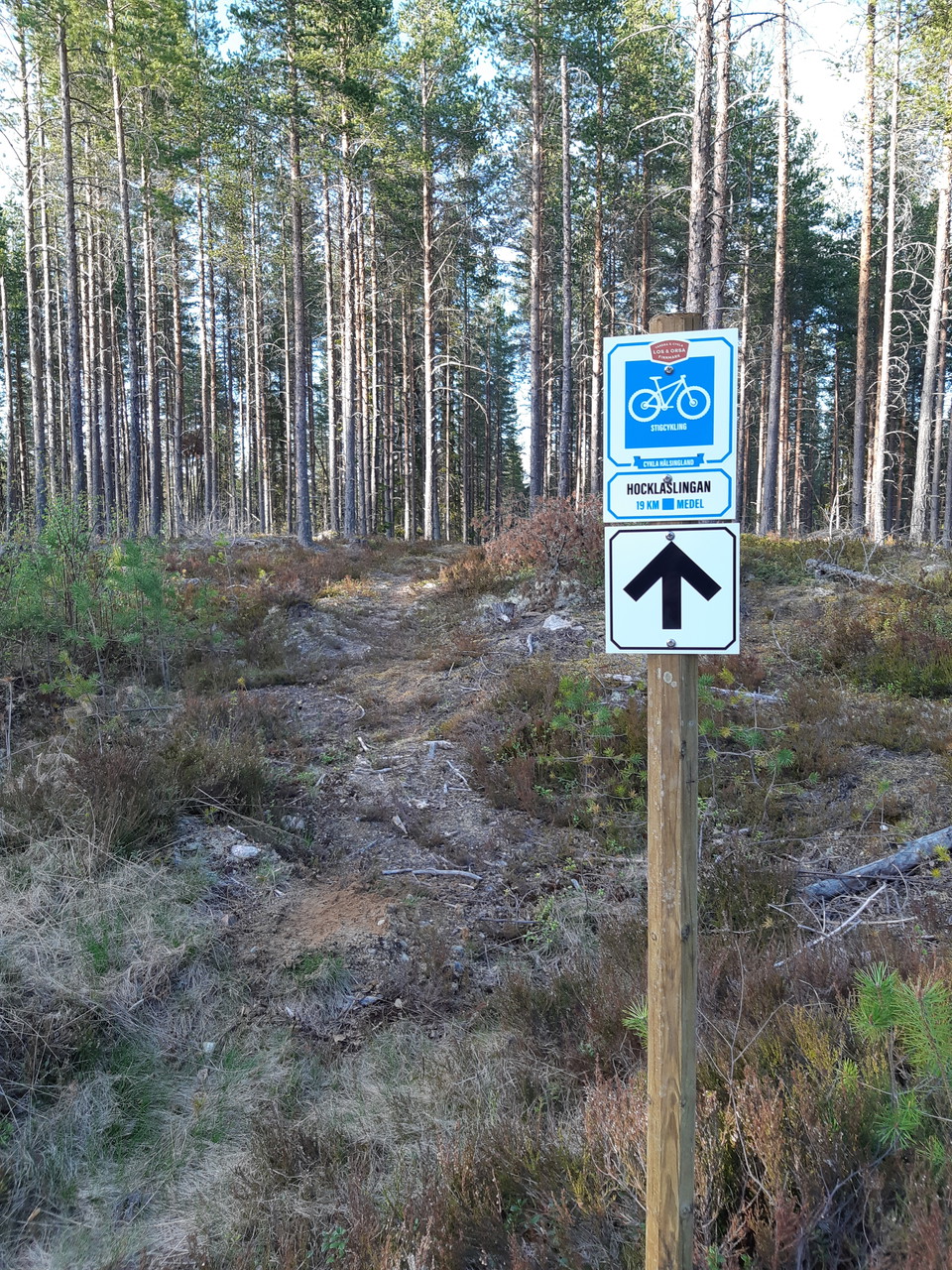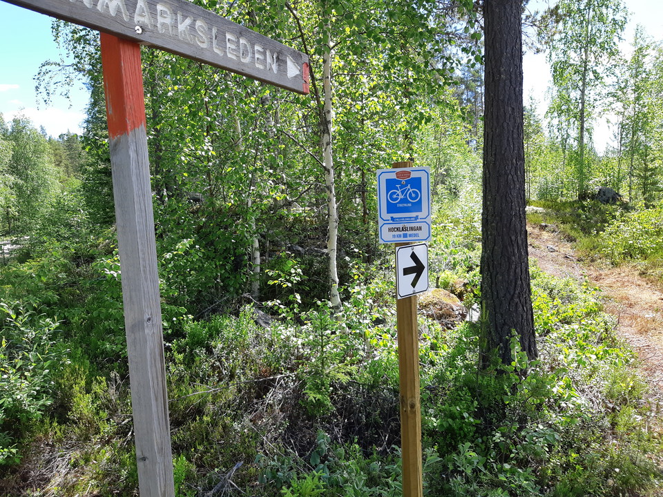 Hocklaslingan seuraa vanhaa pyöräpolkua yhdessä Finnmarksledenin kanssa Västerhocklania pitkin. Silmukka on yhdistetty metsäteihin, lyhyeen tieosuuteen 719 ja Stormyranista löytyneeseen ja varustettuun pyörätieosuuteen.